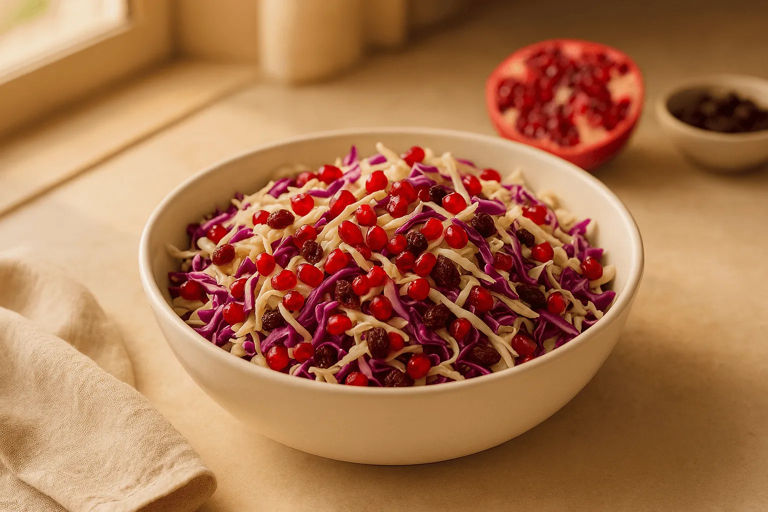 - برای تزئین سالاد، از چند برگ ریحان، دانه انار، گردو خرد شده یا مغز تخمه کدو استفاده کنید.