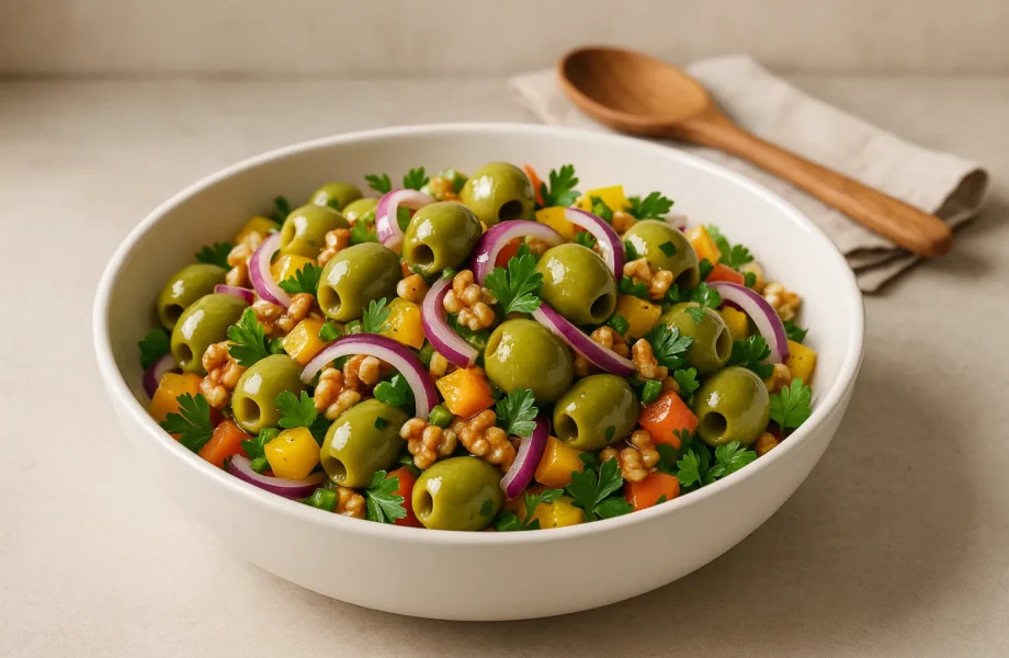 طرز تهیه سالاد زیتون و گردو؛ دستور مرحله به مرحله و ترفندها